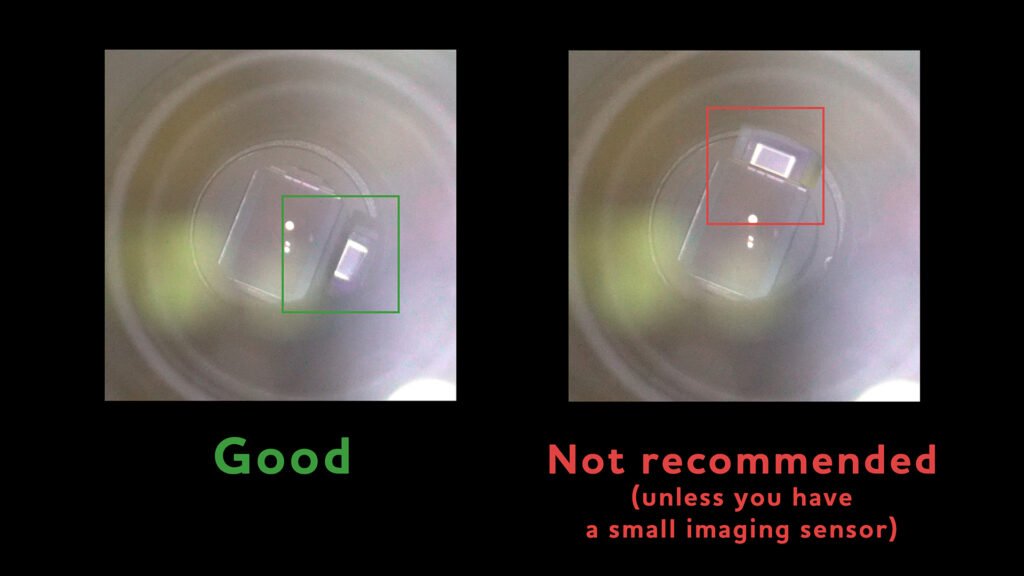 When mounting the OAG you want to make sure that the prism is not obstructing the view of your imaging camera, and the best position of the prism is towards one of the longest sides of the imaging sensor. I know it’s going to be tough for some SvBony’s cameras, but this is the best way to go.